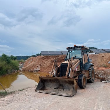At around 4pm, we headed to Tampin via the KESAS Highway. Along the way, the views of nature, villages, architecture, and people truly captivated me. The breeze was cool and peaceful, making the journey even more enjoyable. After about two hours, we arrived at the site, which was surrounded by oil palm plantations, a cluster of terrace houses, and a wide plain field. The site seemed newly opened, as the environment looked bare and quiet.