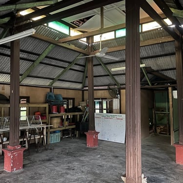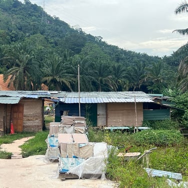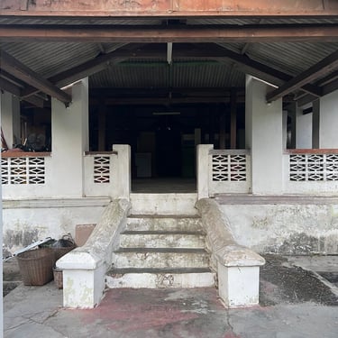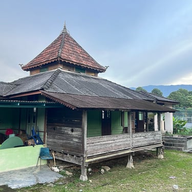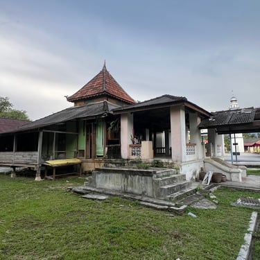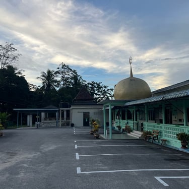 Unexpectedly, the mosque revealed something remarkable. It was not a single structure, but a combination of two, a newer concrete mosque standing beside a hidden traditional Malay wooden mosque. My eyes were immediately drawn to the beauty of the traditional mosque. Although part of the building was slightly damaged, it still stood strong. The mosque was adorned with beautiful wood carvings, had a Meru roof, a verandah, and a concrete staircase. I walked in and out of the mosque and believed that it was no longer fully functioning or regularly used by the villagers.