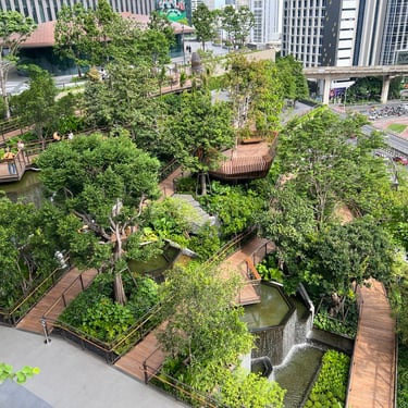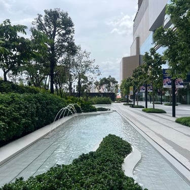 The following day, I visited One Bangkok, a shopping mall integrated with open green space. Similar to TRX in Kuala Lumpur, it presents a modern design and offers space for relaxation. However, the area could benefit from more shade trees, as limited planting results in stronger exposure to sunlight and create discomfort.