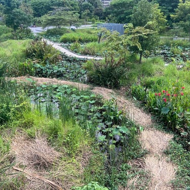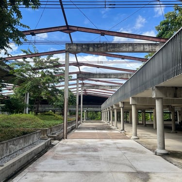 We began at a gallery in a brutalist-style building, which displayed a large city model built by students. It offered a detailed bird-eye view of Bangkok’s urban form. As we continued walking, I appreciated the varied-level walkways that framed both city and nature views. The atmosphere was calm, with students taking graduation photos, couples spending time together, and people jogging and cycling. The planting design was diverse and arranged in a naturalistic manner. One feature I particularly inspired was the use of dried foliage as an alternative pathway surface, it was simple and organic.