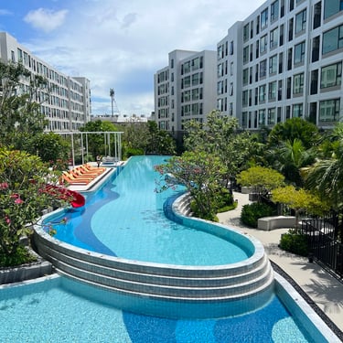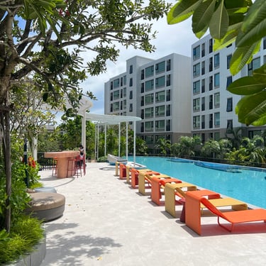 Before lunch, we toured Kave COCO Bangsaen, a condominium landscape project on the outskirts of the city. The design was colourful and organic, especially around the swimming pool area. The landscape created a beach-like atmosphere, complete with a man-made island and comfortable seating areas. Some participants argued that it would be difficult to replicate their curving design in Malaysian projects haha.