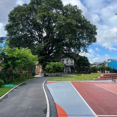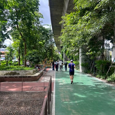 On the third day, we visited two community parks. The first was Suan San, a small reclaimed park serving the surrounding community. The park was very expressive, with tree roots growing freely, timber houses showing strong authentic character, and pathways connecting directly with kitchens and living rooms, and overall, it felt as if the community was living within the park. Although limited in size, it provided inclusive spaces for jogging, mini soccer, and playground activities; we even saw a child happily playing soccer with his brother. Located in a lower-income residential area, the park contributes positively to equal access to recreational spaces, highlighting the role of landscape architects in promoting wellbeing, sustainable communities, social justice, and reduced inequality. I hope to see more parks like Suan San in Malaysia, especially in rural areas, to provide accessible, inclusive, and community-focused green spaces.