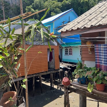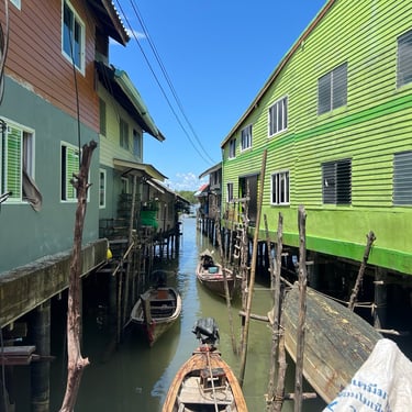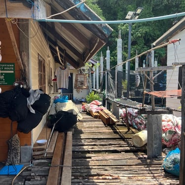 After lunch, we explored further into the village. The houses were interconnected by irregular pathways, some concrete, mostly timber. Homes stood closely along these paths, with many villagers operating small businesses in front of their houses, selling food, clothing, toys, and more. They mainly spoke Thai, with only a few understanding English.