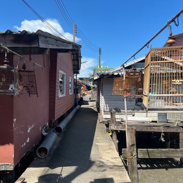 The settlement was informal and organic. Some kept birds in cages as a hobby. House entrances often faced each other, creating intimate communal spaces. You could glimpse kitchens, parked sampans, hanging laundry, living rooms, and upper floors from different perspectives. Many residents were sitting outside and chatting with neighbours. As it was Friday, some had just completed Friday prayers at the mosque. I managed to perform jamak Zohor and Asar prayers there.