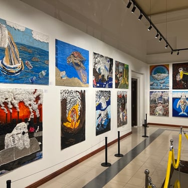 At the art gallery, the exhibitions were mainly contributed by groups of secondary school students from different schools across the state. The theme was collage art, highlighting the pressing issue of climate change under the guidance of several art teachers. Honestly, their artworks were exceptionally striking, well-composed and eye-catching. They were skilful, mature, and creative in combining different media to express their ideas. This signified that the future of art in Kedah is bright and promising.