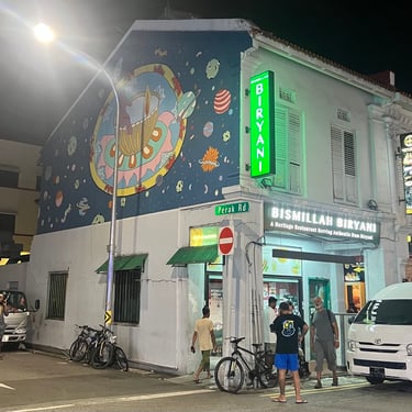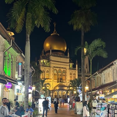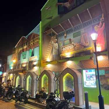 That evening, I explored Arab Street and Kampung Glam. I dined at Zam Zam Restaurant, prayed at Masjid Sultan, and bought a book at Wardah Books. The meal and coffee were pleasant, and the ambience was calm. I was told that the azan can only be heard from Masjid Sultan, not broadcasted widely from other mosques. As I walked further, I admired mural paintings, bought a cap and apples, and passed by construction sites. I even thought of trying a rental bike but did not know how to use it haha.