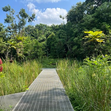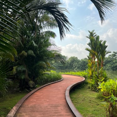 The next morning, we toured Jurong Lake Gardens. The purpose of the visit was to explore how Nature-based Solutions were applied in Singaporean landscape design. The garden was free-entry, expansive, and accessible from many entrances. It was designed around nature, play, and community, with key themes including the Chinese Garden, Japanese Garden, and Lakeside Garden. My favourite spaces were the swamp forest, grassland, Rasau Walk, Sunken Garden, and Water Lily Garden, with the grassland being the best of all. The grassland design felt naturalistic, effortless, wise, and out of the ordinary, and full of pleasant surprises. The mounding landforms and tall Lalang created moments of discovery, sometimes reminding me of Teletubbies haha. Man-made structures were minimal, and the landscape was fully green. Even hide-and-seek would be fun there for smaller and shorter visitors. I strongly encourage others to study its design. I was also impressed by the organic form of the Rasau Walk, as forming such curves is not easy. Beside it were wetlands resembling a long river, with sago palms and shrubs. After more than two hours, we left for chicken rice.