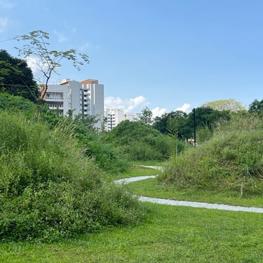 After lunch in Kampung Glam, we continued to Bidadari Park, developed on a former cemetery site. Surrounded by apartments and a mall, the park features adventurous playgrounds, spontaneous paths, and impressive plant compositions. Although it appears small from the entrance, deeper exploration reveals multiple perspectives and attractions, including a man-made island dominated by a large tree. The island’s simple organic form is enhanced by thoughtful softscape arrangement.