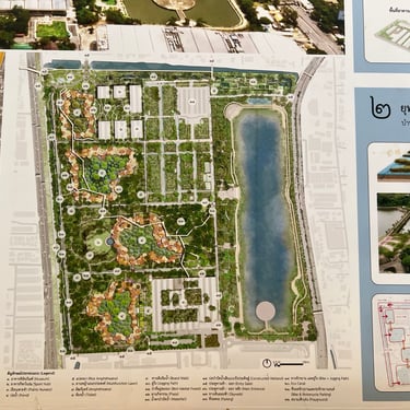 In the second half of the day, I visited Benchakitti Forest Park, a project developed on a former military site that now serves as the green lung of Bangkok. The park’s scale is impressive, comprising about 30% blue space and 70% green space. Benchakitti was initially designed to act as a “city sponge” to mitigate urban flooding. The park is divided into multiple zones, and its vastness made it impossible for me to explore everything in one visit.