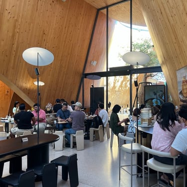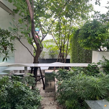 The next morning, I stopped by Nana Coffee Bangna, a modern cafe concealed beneath the highways. Beyond serving good coffee, the place enticed its visitors with its breathtaking architectural design. The building, painted almost entirely white, featured a layout where interior and exterior spaces were separated by multiple doors yet visually linked through glass walls. Coffee lovers could choose to sit either indoors or outdoors, where steel-crafted benches offered a unique and refreshing experience.