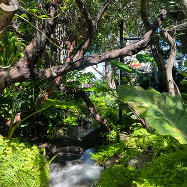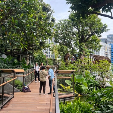 The main purpose of my visit to Bangkok was to explore urban parks that embody innovation and unconventional design. I kicked off my trip with a visit to the newly launched Dusit Central Park, a rooftop landscape project. Although the area was relatively small, its creative use of slopes and layered walkways showcased impressive design ingenuity. The park not only addressed spatial limitations but also offered an adventurous experience through its multi-level paths, terraced tropical plants, and a dramatic waterfall. Visitors can enjoy a panoramic view of the city while relaxing in this elevated green space.