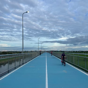 In the late evening, I went to the Happy and Healthy Bike Lane, located near Suvarnabhumi Airport. True to its name, I felt extremely happy and refreshed after taking a long walk on the elevated walkway. This walkway functions as a connector between the park and the airport, while also serving as a recreational space for the public to jog and cycle. The experience was truly extraordinary, as you could watch airplanes landing alongside vehicles on the surrounding roads. I wish this kind of creation could be replicated in certain locations in Malaysia.