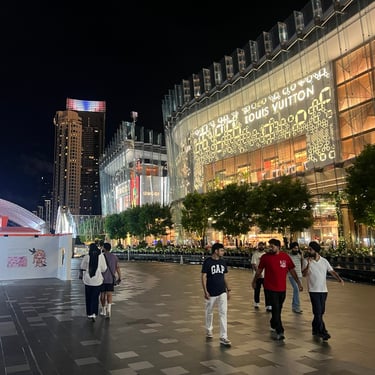 Besides the food, I think the night activities, such as taking the train, watching the fountain show, and visiting the mall and art galleries, were experiences I shouldn't have missed. To enjoy these, I went to Icon Siam to witness the fountain show, took a ride on the train (with Siam BTS Station being the busiest that night), and wandered around observing the lively behaviour of the Thai people. Not to forget, I sadly want to mention that finding a prayer room or mosque in Bangkok is quite difficult, so it is better to manage your time wisely.